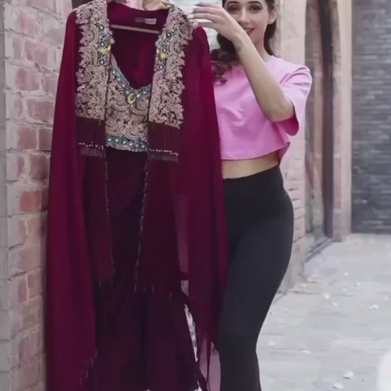 Western Dhoti: Organza Silk, embroidered with thread & sequins, fits up to size 40 (zipper)