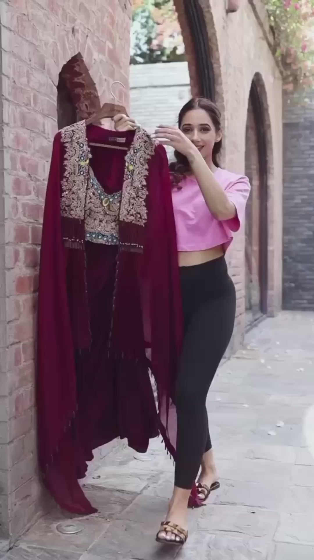 Premium Wine Organza Dhoti Salwar | Free Size (Up to 42")